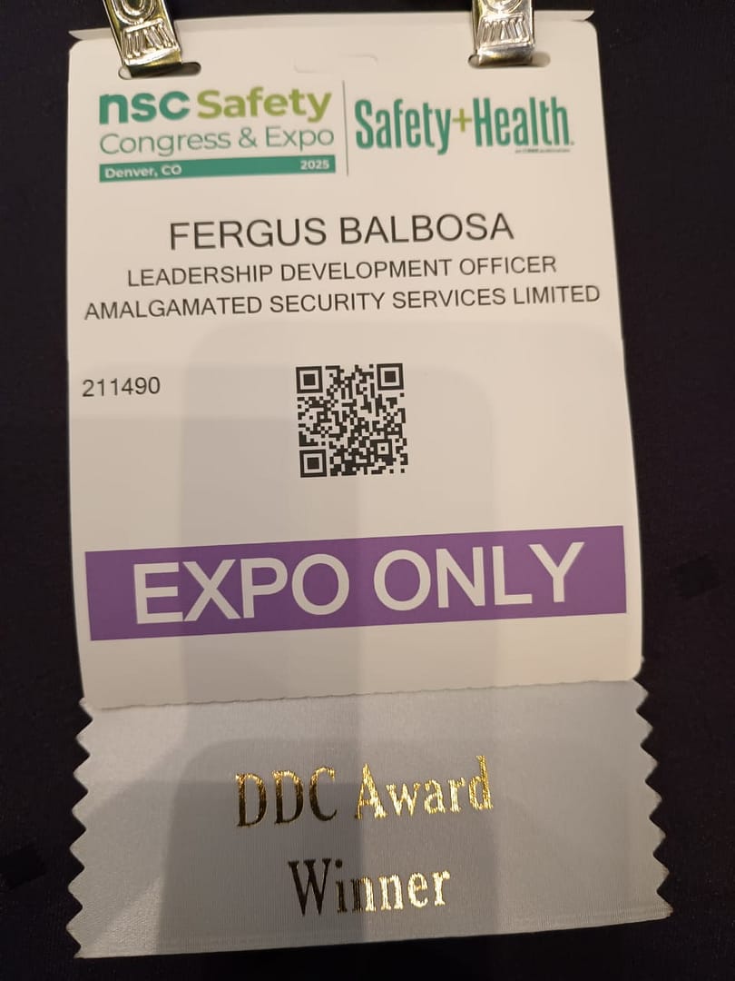Amalgamated Security Services Limited (ASSL) proudly announces that Mr. Fergus Balbosa, Leadership and Development Officer, has been honored with the prestigious Defensive Driving Instructor of the Year – Left Side of the Road award by the National Safety Council (NSC).